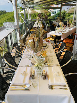 Sehr gerne richten wir Ihre privaten oder geschäftlichen Feierlichkeiten auf unserer Terrasse für bis zu 50 Personen, im Sommergarten für bis zu 30 Personen oder in unserem gemütlichen Gastraum für bis zu 50 Personen aus. In seltenen Fällen ist auch eine Feierlichkeit von bis zu 120 Personen durch eine Exklusivbuchung des gesamten Restaurants möglich.